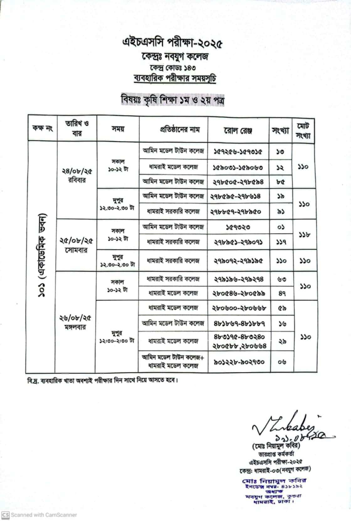 Notice Title : উচ্চ মাধ্যমিক ব্যবহারিক পরীক্ষা-২০২৫ এর সময়সূচি (নবযুগ কলেজ, কুশুরা)