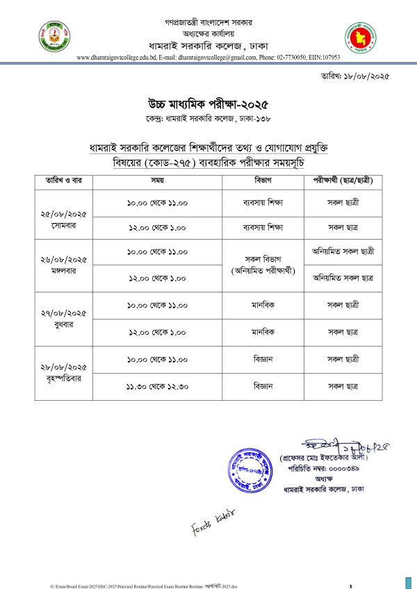 Notice Title : উচ্চ মাধ্যমিক পরীক্ষা-২০২৫ এর আইসিটি ব্যবহারিক পরীক্ষার সমূয়সূচি