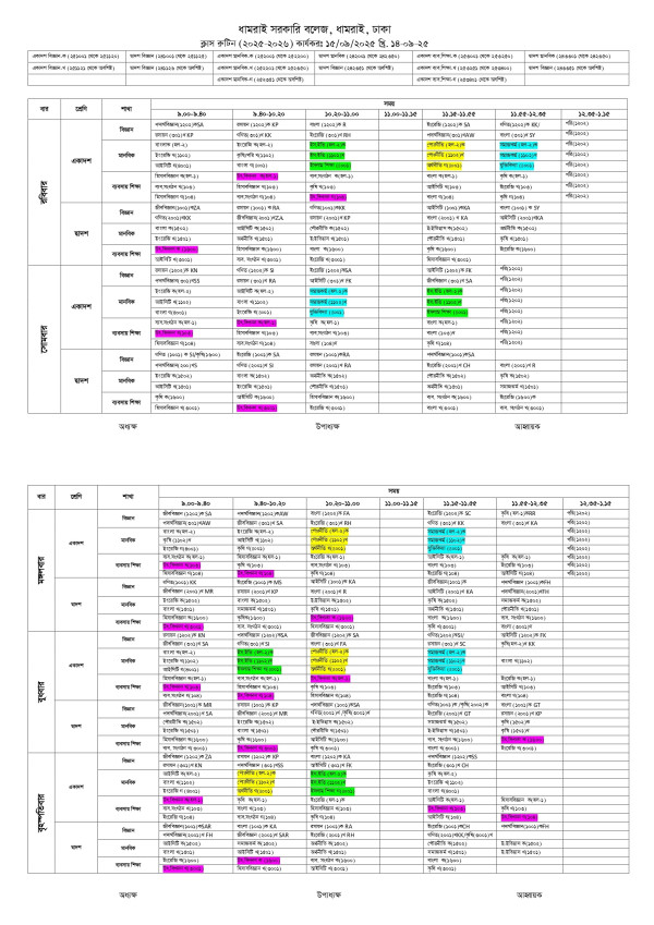 Notice Title : একাদশ ও দ্বাদশ শ্রেণির নতুন ক্লাশ রুটিন (১৫-০৯-২০২৫ থেকে কার্যকর)
