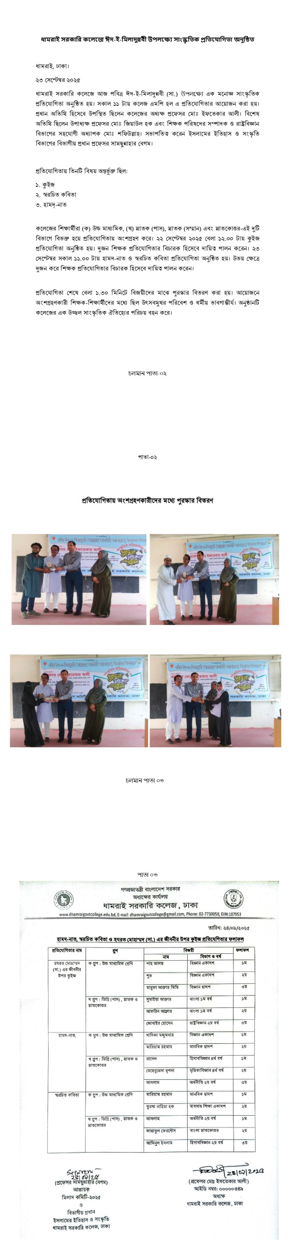 Notice Title : ধামরাই সরকারি কলেজে ঈদ-ই-মিলাদুন্নবী উপলক্ষ্যে সাংস্কৃতিক প্রতিযোগিতা অনুষ্ঠিত