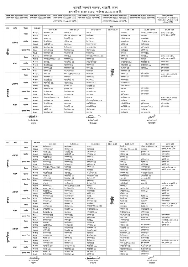 Notice Title : একাদশ ও দ্বাদশ শ্রেণির নতুন ক্লাস রুটিন (১২/১০/২০২৫ তারিখ থেকে কার্যকর)