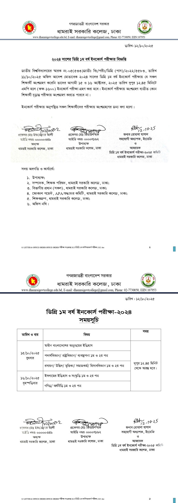 Notice Title : ২০২৪ সালের ডিগ্রি (পাস) ও সার্টিফিকেট কোর্স ১ম বর্ষের ইনকোর্স পরীক্ষার বিজ্ঞপ্তি ও রুটিন