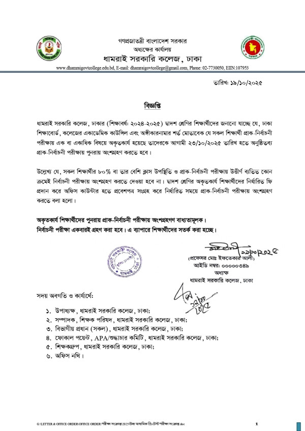 Notice Title : দ্বাদশ শ্রেণির পুন: প্রাক-নির্বাচনী পরীক্ষা-২০২৫ সংক্রান্ত জরুরি