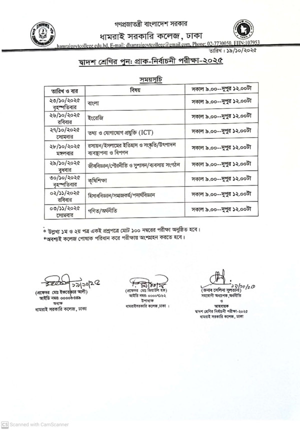Notice Title : দ্বাদশ শ্রেণির পুন: প্রাক-নির্বাচনী পরীক্ষা-২০২৫ এর সময়সূচি