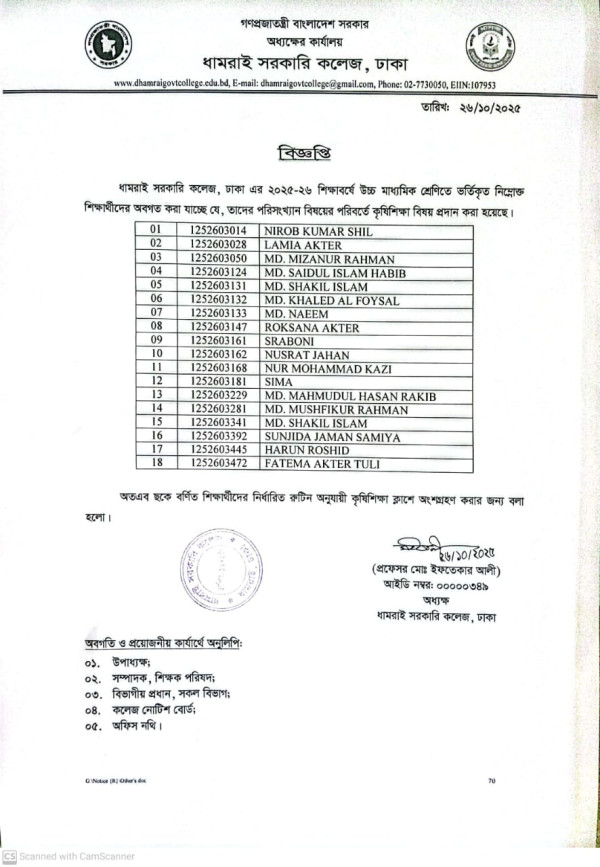 Notice Title : একাদশ শ্রেণিতে ভর্তিকৃত শিক্ষার্থীদের পরিসংখ্যান বিষয়ের পরিবর্তে কৃষিশিক্ষা বিষয় প্রদান বিষয়ক বিজ্ঞপ্তি
