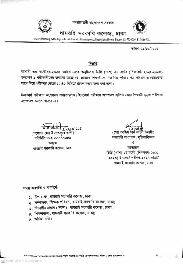 Notice Title : ডিগ্রি ২য় বর্ষের ইনকোর্স-০১ পরীক্ষা সংক্রান্ত বিজ্ঞপ্তি