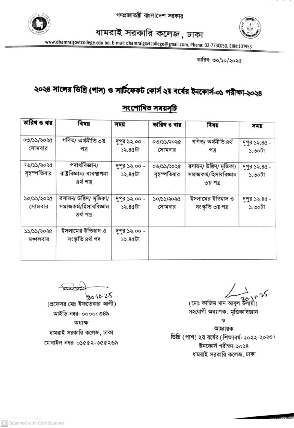 Notice Title : ২০২৪ সালের ডিগ্রি ২য় বর্ষের ইনকোর্স-১ পরীক্ষার সংশোধিত সময়সূচি