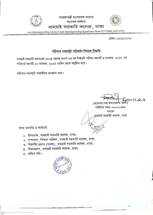 Notice Title : ২০২৪ সালের অনার্স তৃতীয় বর্ষের নির্বাচনী পরীক্ষার সময়সূচি পরিবর্তন বিষয়ক বিজ্ঞপ্তি