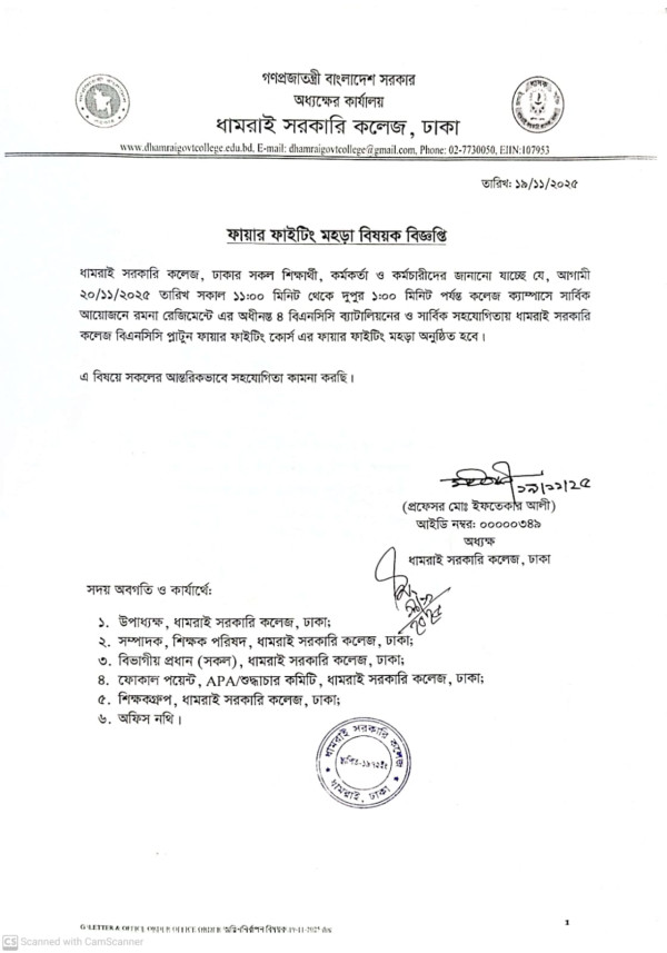 Notice Title : ফায়ার ফাইটিং মহড়া বিষয়ক বিজ্ঞপ্তি