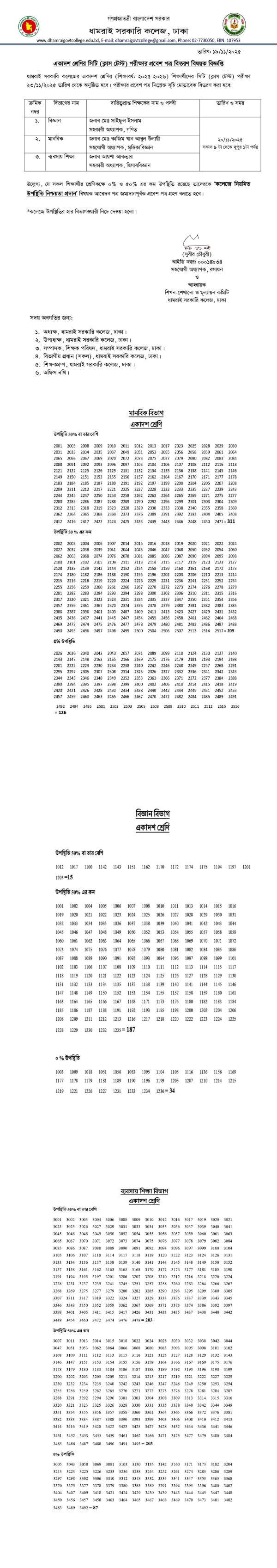 Notice Title : একাদশ শ্রেণির সিটি (ক্লাস টেস্ট) পরীক্ষার প্রবেশ পত্র বিতরণ বিষয়ক বিজ্ঞপ্তি