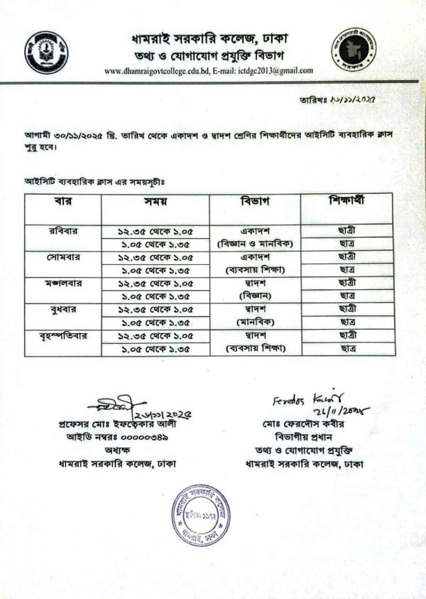Notice Title : আইসিটি ব্যবহারিক ক্লাশ রুটিন