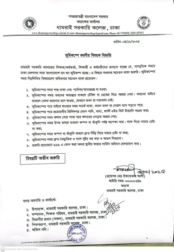 Notice Title : ভূমিকম্পে করণীয় বিষয়ক বিজ্ঞপ্তি