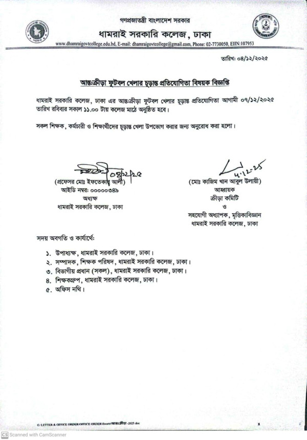 Notice Title : আন্ত:ক্রীড়া ফুটবল খেলার চূড়ান্ত প্রতিযোগিতা বিষয়ক বিজ্ঞপ্তি